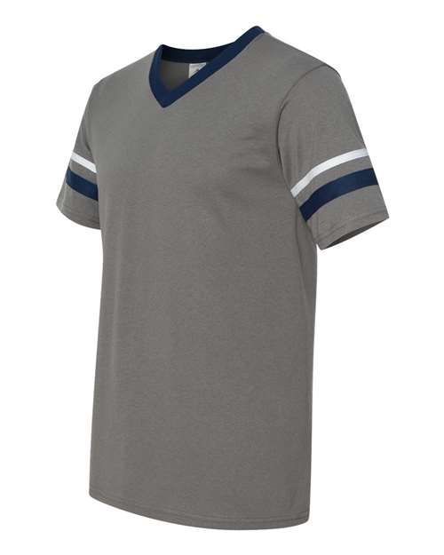 Augusta Sportswear V-Neck Jersey with Striped Sleeves 360 - Graphite/ Navy/ White
